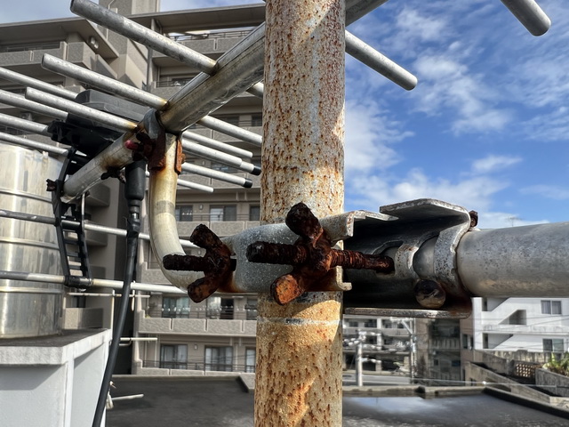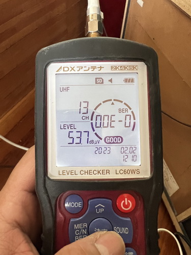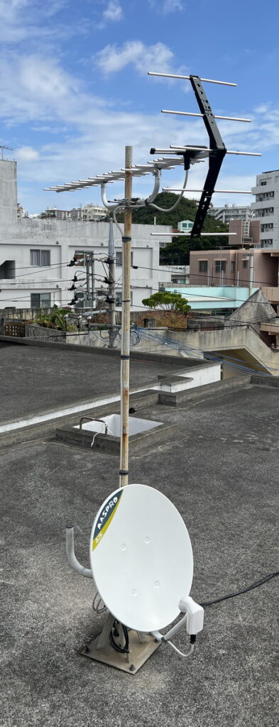 アンテナ工事 UHFアンテナ交換 那覇市のS様より、地デジ・チャンネルの一つが映らないということで、調整の依頼でしたが、金具が腐食して調整が無理だったので、アンテナの交換で対応させていただきました。 ケーブルもゴチャゴチャしてたのを、整理してBSアンテナも再調整しました。 UHFアンテナを交換しました。 レベル確認ヨシッ! 有難うございました。